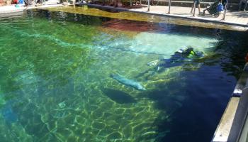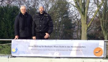 Den letzten Putztermin des Jahres nutzte der DUC Wattenscheid, um ein neues Banner im Tierpark zu hissen. Gemeinsam mit Zoodirektor Ralf Slabik weihte der 1. Vorsitzende des Tauchclubs, Trevor Heringhaus, das neue Kooperationbanner an den Nordseewelten ein. Dort macht es nun die Besucher des Tierparks auf das ehrenemtliche Engagement der Taucher aufmerksam. Zum Wohle der Tiere und zum Schutz von Ressourcen befreien die Mitglieder des Tauchclubs das Zuhause der Seehunde und Huboldt-Pinguine regelmäßig von Algen und Schmutz. Dabei haben die Taucher auch schon Gegenstände wie Münzen oder gar eine Kamera geborgen. Bei ihren Einsätzen werden die Taucher des DUC immer wieder auch von befreundeten Tauchclubs unterstützt. So nutzen diesmal Taucher der TSG Biber Bochum e. V. die letzte ... (weiterlesen)
