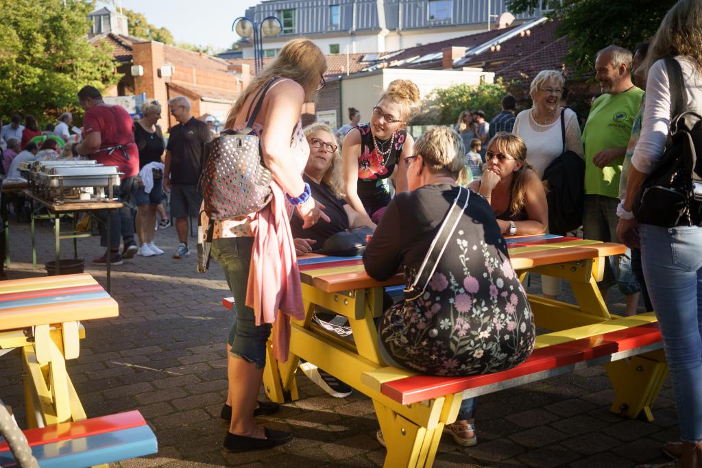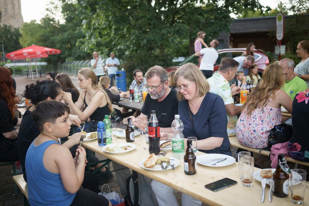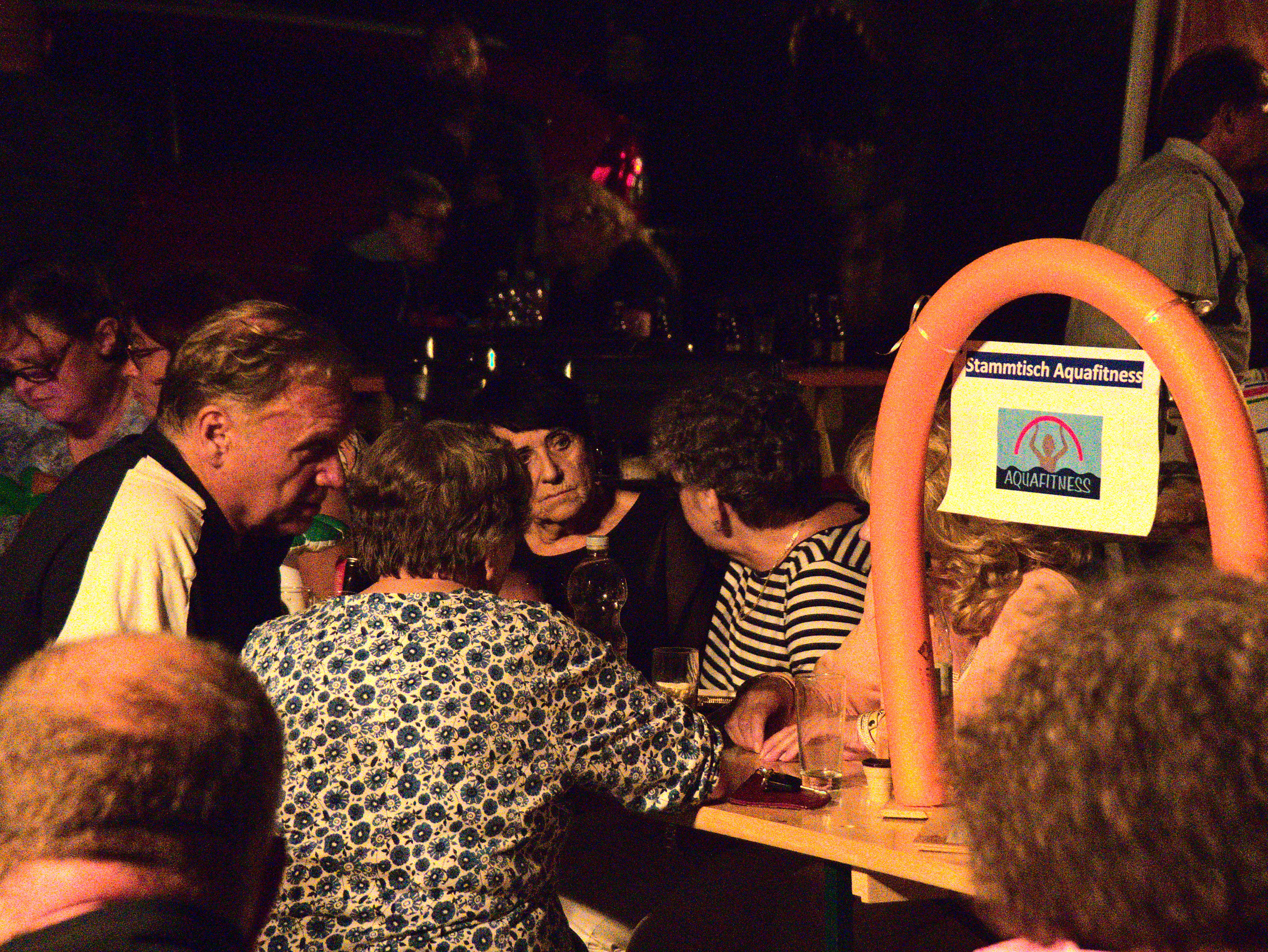 Auch nachdem es dunkel geworden war, blieb es weiter ein reges Fest. Musik kam von der Playlist der Aquafitness, und es wurde viel gelacht und erzählt. Bei der Gelegenheit, mal wieder Leute aus allen Bereichen des Vereins zu treffen, wurde sich viel ausgetauscht und unterhalten.