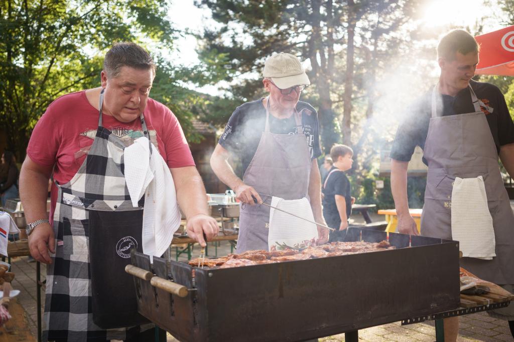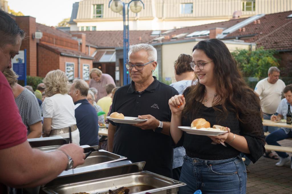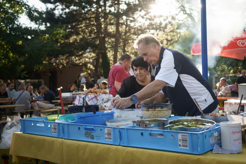 Nach den Zeremonien wurde das Grillbuffett feierlich eröffnet. Grillmeister Thomas und die anderen Griller versorgten alle mit leckerem Grillgut, während die Aquafitnessgruppe sich um leckere Salate und Aufstriche gekümmert hatte. Bei gutem Essen und Getränken gab es an den vollen Tischen viele gesellige Gespräche.
