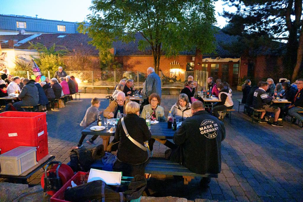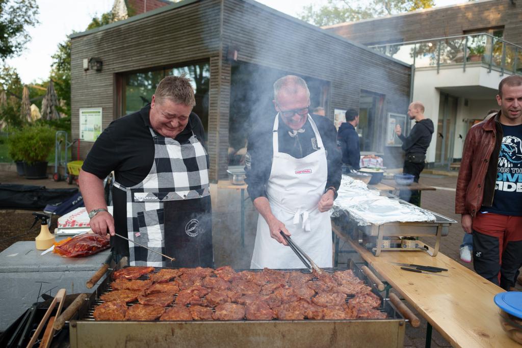 Drei besondere Grillmeister haben in kürzester Zeit Unmengen an Grillgut zubereitet. Dazu wurden selbstgemachte Salate, Dips und sogar Nachtisch serviert und kaum wurden die wichtigsten Worte des Abends "Das Buffet ist eröffnet" laut verkündet, ging das gemütliche Schlemmen los. Überall wurde gelacht, geredet, gegessen, getrunken und Spaß gehabt.
